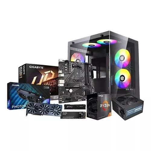 AMD Ryzen 5 5600 Processor,Gigabyte RTX 5050 8GB Griphices,Gigabyte B550M K DDR4 Motherboard,16GB 3200Mhz DDR4 RAM,512GB NVMe SSD,RGB Gaming Case with 750W 80+ Gold PSU,Cooler Master Z50 Air Cooler,Windows 11 Pro OS